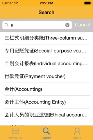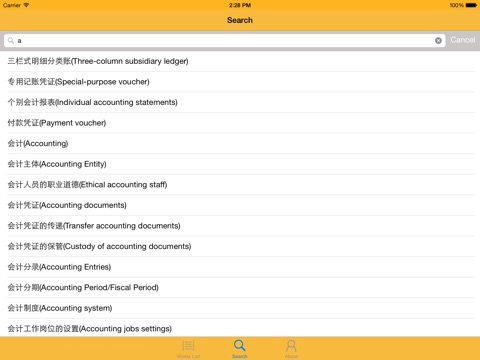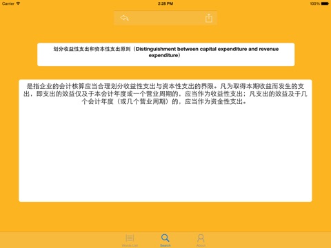 With economic development was, accounting accounting class talent is no longer exclusive, more and more ordinary people came into contact with, to understand, to the daily life in the face of a wide variety of economic phenomena and accounting services. Students of the application, intended to address a wide variety of accounting class nouns encountered in daily life, so that more people understand the meaning of the vocabulary of accounting, general accounting course for beginners class, or face accounting class exam can also be reference and review. The application supports English nouns retrieve accounting and provide Chinese explanations. I hope everyone will be helpful in learning and life.