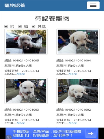 1..提供流浪動物寵物認養的資訊