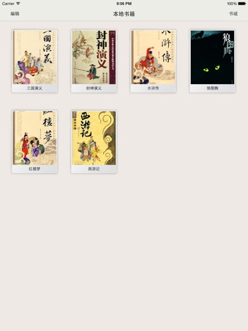 app内置了西游记,三国演义,水浒传,红楼梦,封神榜,狼图腾,等经典名著,下载完app,没有wifi也可以随便阅读。