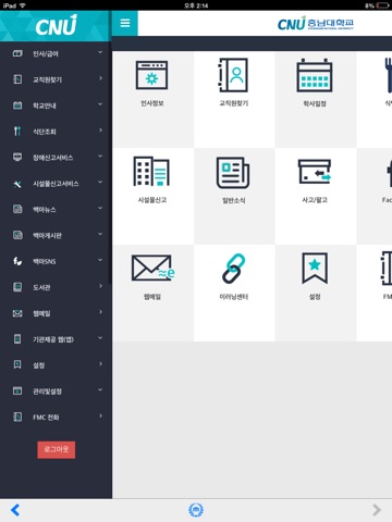 ● 충남대학교 구성원인 학생, 교수, 직원 등 사용자 별로 기능이 구성되어 있으며,