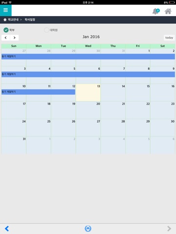 충남대학교 공식 모바일 서비스는 작년 3월 시범 버전(V0.9)을 오픈하였고, 9월에 정식 버전(V1.0)을 오픈하였습니다. 2016년 1월 11일부터는 한층 더 업그레이드된 충남대학교 공식 모바일 서비스 시범 버전(V1.9)을 제공하기 시작하였으며, 약 한달 반의 안정화 기간을 거쳐 2016년 2월 22일 정식 버전(V2.0)으로 서비스를 제공할 예정입니다. 많은 관심 부탁 드립니다.