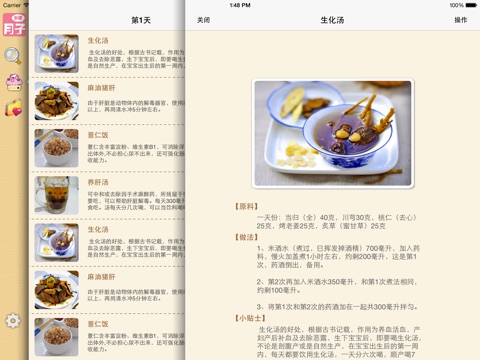 1.为妈妈精心准备海量产后恢复食谱,包含28天每日早,午,晚推荐以及炒菜,汤类,粥类等百道经典产后食谱。