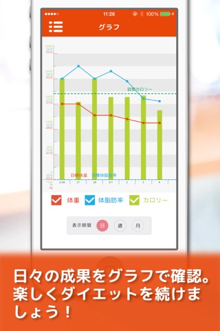 簡単操作で体重・体脂肪率・摂取カロリーを記録!