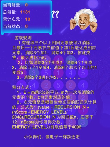 SCORE: n E=mc²,m equal num of disappearred elements,c equal value of selected element , DIMENSION value = 12 + (nScore - 4096)/2048n n