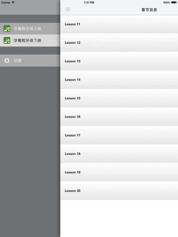 本应用满足了初学者的所有要求。不仅软件设计大方美观,内容更是丰富多彩。从基础字母入门,到日常生活、青春校园、职场风云、特色文化等,几乎涵盖了所有你能想到的,以及你若是有机会去葡萄牙旅游生活或是工作能够用到的所有方面。