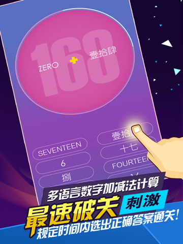 此应用并不是要考验你的计算能力有多强,而是在多语言之间的快速转换.游戏中你必须不停在做语言转换,所以不建议长时间玩,每次玩几分钟,坚持每天玩几次,相信一段时间下来你会发现你的思维反应速度会比之前会有明显的提高.1