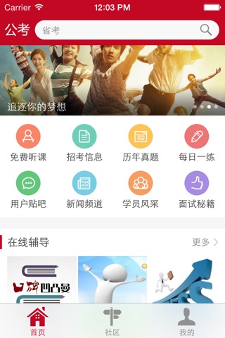 公考中国APP震撼来袭!针对国家公务员考试、各省公务员考试、各类企事业单位招考等面试培训进行专业辅导,主要涵盖结构化面试和无领导面试等。我们秉承最优质的教学资源,最给力的师资团队,最至臻的服务理念,让考生从零基础到成公上岸一站到底,全网最低资费,最全面的教学模式,让你在快乐中成长,在奋进中收获,亲们,来吧,让我们一起扬帆起航!