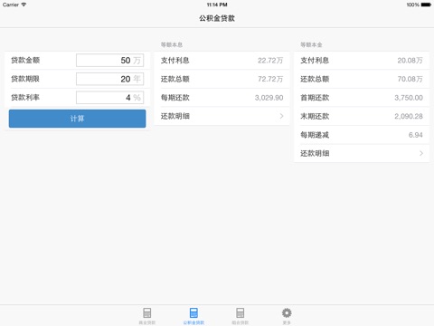 无论贷款方式是商业贷款,公积金贷款还是组合贷款;无论还款方式是等额本金还是等额本息,这个小工具都能帮您计算出贷款总额,还款利息,还款明细,相信您一定喜欢。