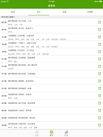 2.赛事赛程,闹铃提醒