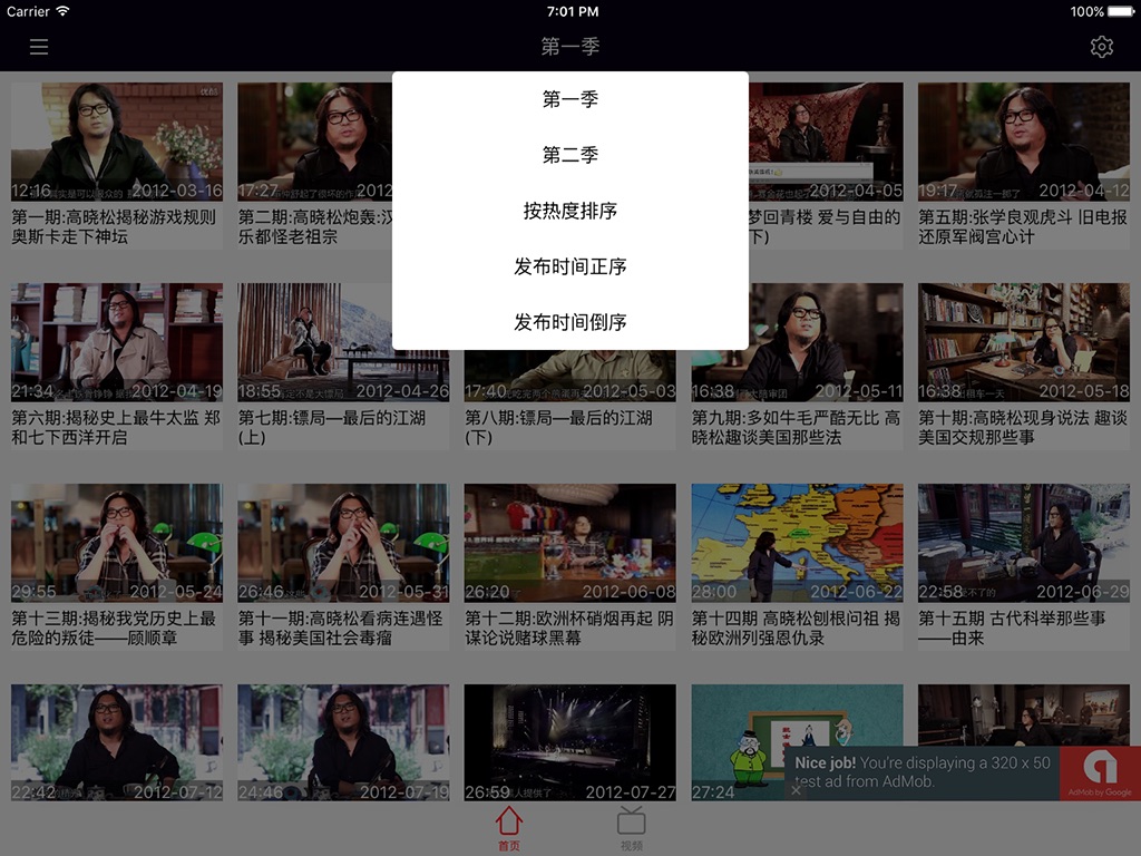 -支持视频列表按日期、热度排序