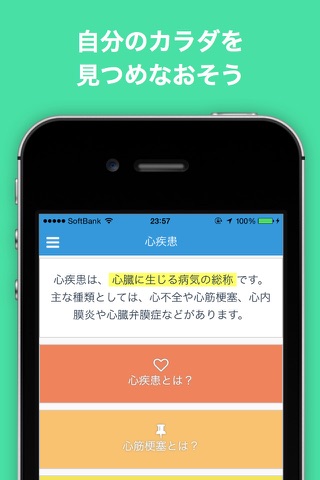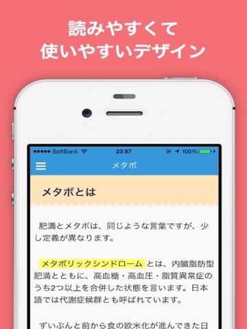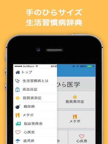 生活習慣病予備軍のための『てのひら医学』は、いつでもどこでも、わかりやすく信頼できる医学情報にアクセスできるアプリです。