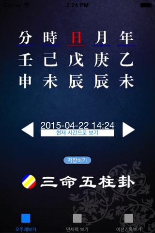 오주괘에 대해서 사전에 공부가 되어있는 경우에 사용이 가능하며 일반적인 사주프로그램과는 다릅니다. 오주괘는 질문자가 질문하는 순간의 시간을 연월일시분으로 정하여 간지로 변환을 하여 보여주는 것입니다. 주의할 점은 여기에서 오주괘의 해석은 보여주지 않는다는 것입니다.