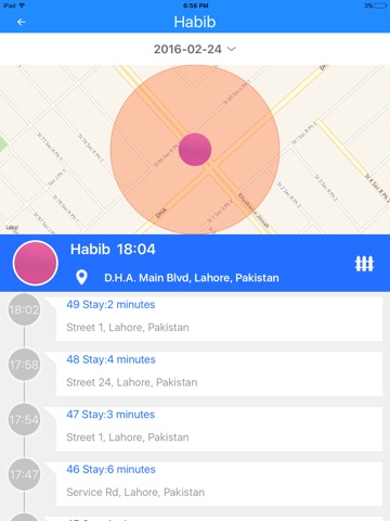 • Geo Fence on map can be set and notification alarms generated in case kid leave or enters the radius.