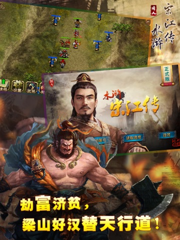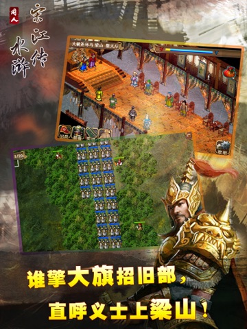 这是一款以《水浒传》为题材的回合制战棋类游戏,游戏中以宋江为主角率领108个梁山好汉, 通过一系列反抗压迫、英勇斗争的生动故事,揭示了当时的社会矛盾, 暴露了封建统治阶级的腐朽和残暴,揭露了当时尖锐对立的社会矛盾和“官逼民反”的残酷现实。