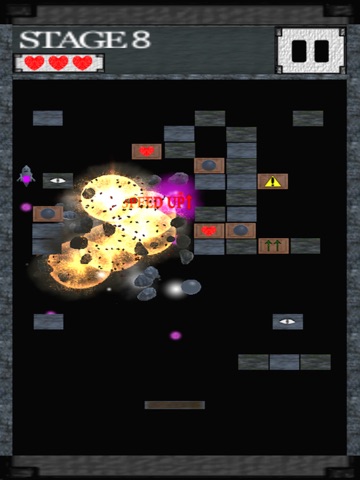すべてのものを破壊するとステージクリアです。爆発するブロックや生きているキモいブロックなどさまざまな種類のブロックがあります。モンスターも出現します。モンスターの攻撃を受けるといろいろなよくないことが起きるのでがんばって避けてください。