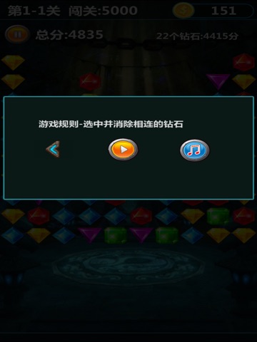 钻石消消乐游戏点击2个以上的相同颜色的钻石,就会消除并得分,每过一关都可以获得金币积分哦。快点加入钻石消消乐游戏吧。