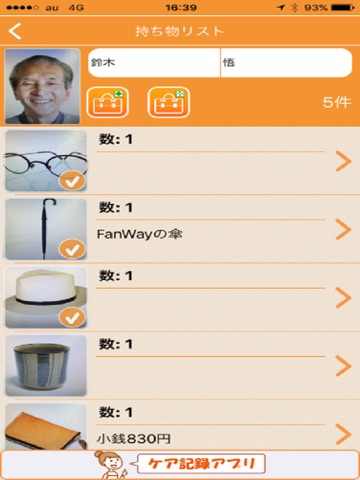 持ち物リストを簡単に効率よくチェック・管理できる介護業務支援アプリです。