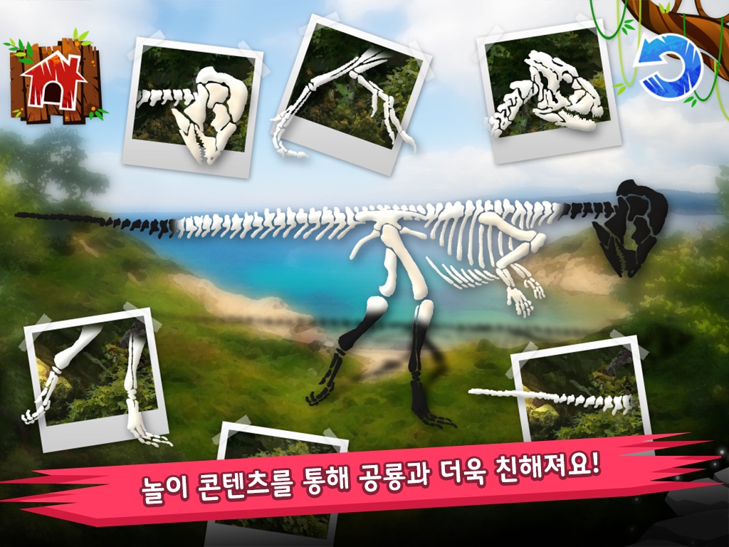 - 공룡 놀이북 : 공룡백과에서 학습한 내용을 바탕으로 공룡과 좀더 친숙해질 수 있도록 퍼즐, 숨은그림찾기, 미로찾기, 공룡 경주 등 재미난 놀이북 콘텐츠를 구성하였습니다.
