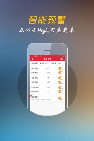 3、智能盯盘:股票盯盘系统、智能预警系统、个股异动提醒、雷达炒股功能、驾车炒股盯盘模式、沙发炒股模式、跑步炒股模式。