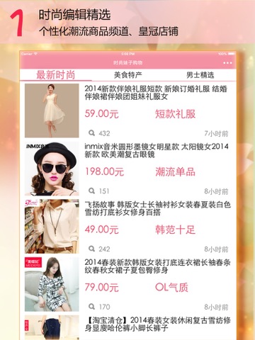 转为美女设计的频道,专设衣服、箱包、化妆品等频道。也有9块9就包邮的最优惠产品列表。你可以时尚又实惠!