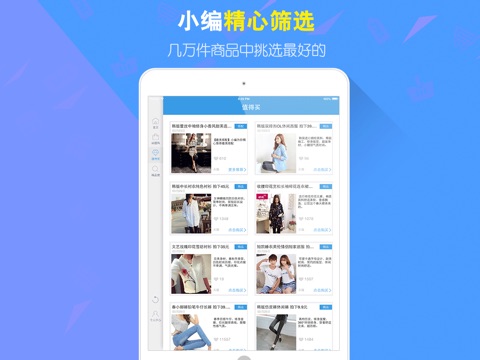 A.商品:收录商品均由人工审核,6大程序验货,质量有保证。小伙伴们剁手也停不下来。在这里,爆款也亲民,几百万用户和你一样,奔着便宜为了省钱而来。每天为用户节省¥1000万以上开支。老品牌,你值得信赖。