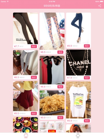 9块9抢购神器,精选淘宝天猫独家折扣单品,让爱美MM花最少的钱买最优质的商品,白菜的价钱,超级的生活享受!