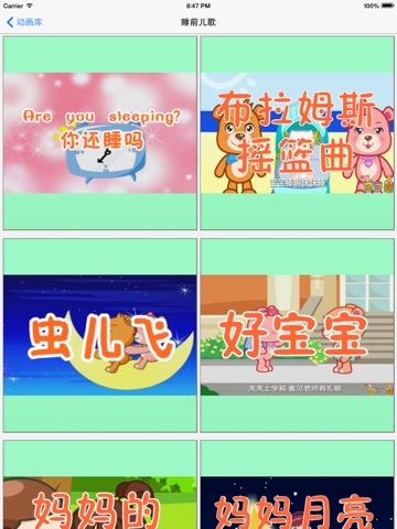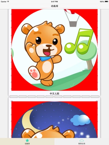 儿歌宝宝包含【中文儿歌】【睡前儿歌】【儿童识物】【儿童唐诗】【儿童折纸】五大分类。,精选的内容,寓教于乐。 并配以充满童趣、可爱诙谐的原创小动漫。语言和动画的结合, 不仅能使宝贝的语言能力有很大提高, 更能使他们的小头脑思维活跃、充满想象,适合各年龄段儿童使用。