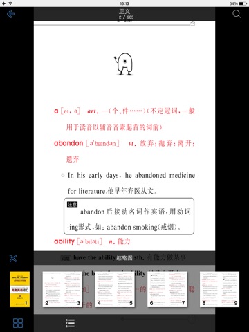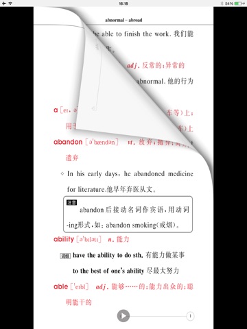 逼真的翻页效果和真人发音,能够准确,高效,便捷地学习。