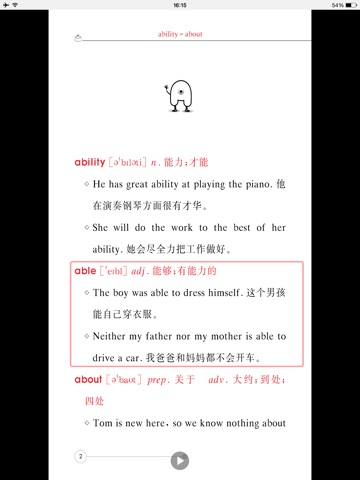 1700多个初中考纲词汇,精准的中文释义,详细的例句。