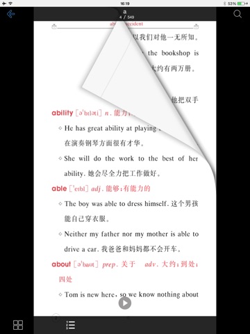 逼真的翻页效果和真人发音,能够准确,高效,便捷地学习。