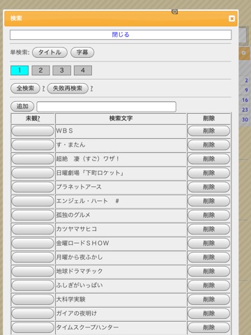・「全検索」は同時に複数の条件でガラポンTVへ検索をかけます。