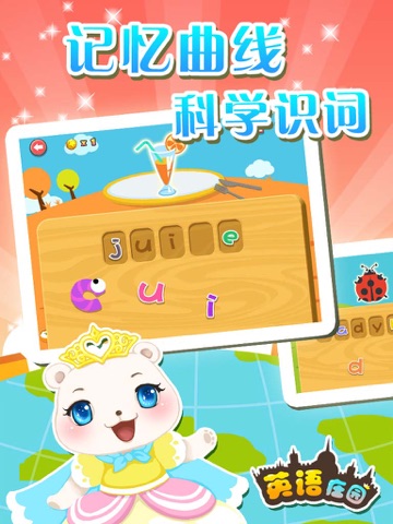 2.英语庄园开发的过程中融入了许多教育孩子的想法,基本上很自然的从母亲角度去设计产品:怎样对孩子好以及让孩子觉得好这两个方面去考虑产品内容。当然我的孩子也是这款产品的小小测试员,让她玩到爱不释手也算是一种满满的成就了。