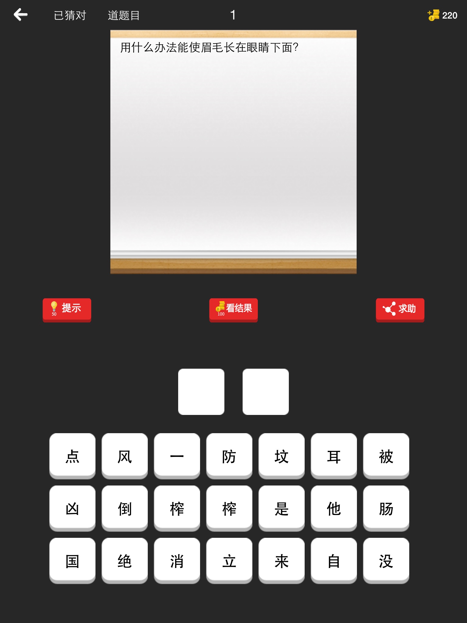 - 根据描述,从若干备选字中拼出正确的答案,考验你的智商!