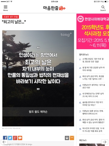 모바일 기기 화면에 딱 맞는 카드 한 장에 내 마음을 따뜻하게 해줄 수 있는 마음한줄.