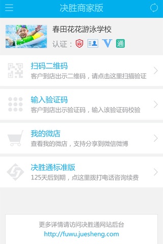 决胜管家手机客户端,决胜网荣誉出品。决胜管家可以帮助入驻决胜网的商家在移动互联网时代更好地管理客户、管理订单、提升经营效果。具体功能包括:一,决胜管家支持用户的到店验证:商家使用决胜管家客户端可以通过扫码或输入数字验证码的方式验证到店用户的订单;二,信息即时提醒:客户的预约、买券、点评会即时提醒到手机,提醒商家快速跟进;三,商家微主页:随时用手机访问微主页,微信微博朋友圈想转就转。