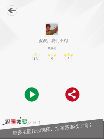 蹬红救绿,是一款极简的速度类小游戏,他能帮助你突破观察力的束缚,提高你的反应能力和手指灵活度。动动手指接住绿框图片别接红框图片,别以为那么简单,当难度等级变成三颗星是你还能应付的来吗?