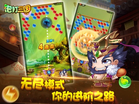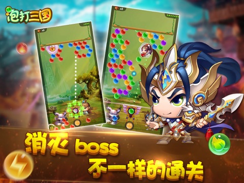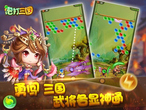 泡打三国以波澜壮阔的三国历史为背景,采用刺激益智的泡泡龙游戏作为战斗模式,结合创新的卡牌收集和宠物培养玩法,是一款清新的Q版中国风手游。