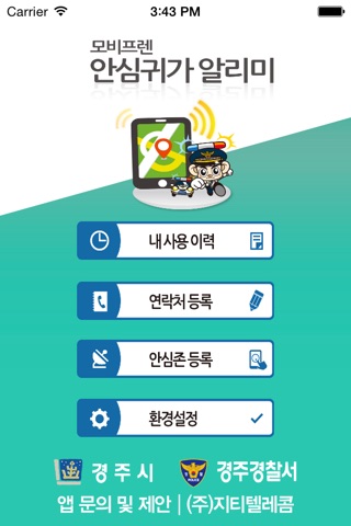 District city hall has installed the Bluetooth devices of safe back home service in main alleys. While going back home or going to school, if you pass by the areas which the devices are installed, your mobile phone senses the signal and notify you to send the location information to the registered contact list.