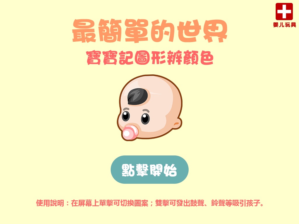 This application will use animation, to attract babys attention, and also can attract childrens attention by double-tap on the screen playback sound. Show your baby every few hours to several tens of seconds to one minute of geometry and color, it will be very helpful in the development of the right brain child.