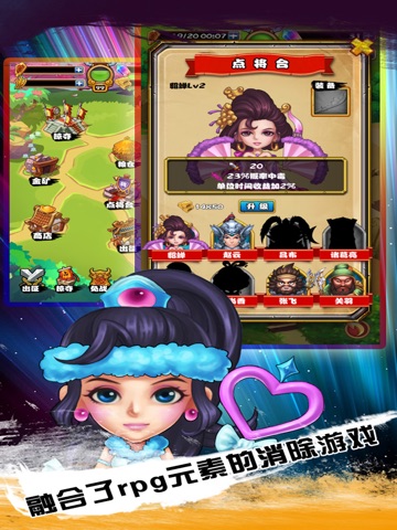 《狂点三国》(click battle)是一款结合了RPG元素的创新型动作消除手游,游戏以特色消除的趣味玩法为基础,同时结合武将技能和武将升级等RPG元素,用消除游戏的玩法方式来演绎RPG游戏的宏大世界和故事背景,为玩家们带来一种全新的RPG动作消除手游体验。