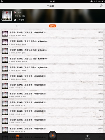 - 支持断点续听、在线听、离线听,WIFI环境下一键收藏全辑,致力于达到最佳用户体验!