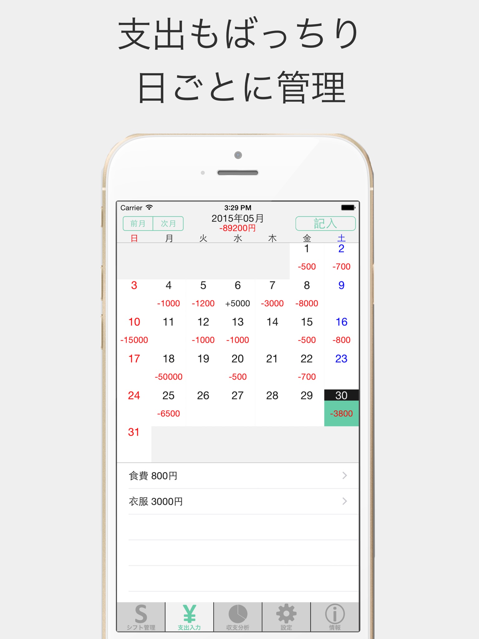 シフトフリーはカレンダーでのシフト管理と日々の支出、収入を一括で管理するアプリです。