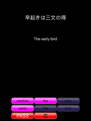 「英語のことわざ並び替えクイズ」は、単語でシャッフルされた英語のことわざ文を、正しく並び替えていくクイズ・ゲームです。