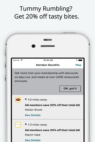 Report a breakdown in less than 5 minutes and track when help will arrive. Stay on top of your vehicle’s health with MOT and service reminders and easy access booking with our approved garages. Relax knowing you’ve always got your cover details and membership number handy. Need a break from the road? Breakdown members get up to 15% off at UK pubs and restaurants.