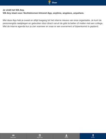Met deze app heb je overal en altijd toegang tot het interne nieuws. Je kunt de personengids raadplegen en gebruiken door direct vanuit de gids te bellen of mailen met een collega. Met de interne agenda kun je zien wanneer en waar er een evenement of bijeenkomst is gepland.