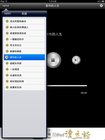 『福音见证』有声APP收录福音见证DVD系列大好信息之见证、信息,例如:走出死荫的幽谷、被火纹身的传道人、真理使我得自由、一双隐密的手、一生的路径—甲主作伙行、无声的乐歌、意外的人生、超越生死线、最苦与最乐、绝处逢生、人生一台戏、往另一方向等福音见证,适用于iPhone智能型手机及iPad平板计算机。