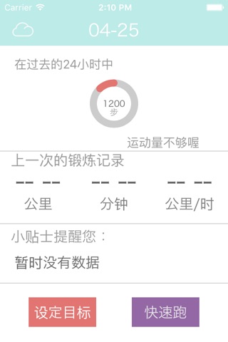 3.每一次跑步完成后,APP会将运动的时间、路程等信息记录在您的iPhone上,还会根据您的运动情况给您鼓励性的话语;
