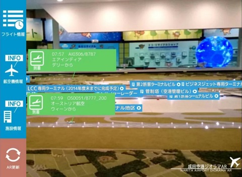航空科学博物館に展示されている「成田空港ジオラマ」を本アプリを通してみると、AR(拡張現実)で臨場感あふれる航空機の離着陸をお楽しみいただけます。
