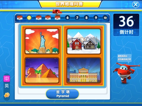 程序主要包括:AR识别、拍照功能、分享功能、以及动画点播功能、游戏功能、和介绍景点知识功能等;使用者可以全方位观看世界著名景点模型;通过超级飞侠乐迪的介绍以及相关百科功能介绍,身临其境般游玩景点;