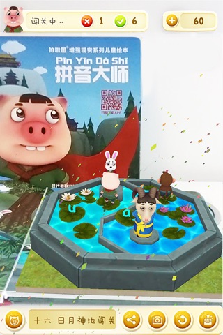 《拼音大冒险》是一款专门针对4-10岁适龄儿童打造的4D互动学习拼音的AR早教产品,集纸质读物、中国古典文化、卡通形象、4D动画、互动游戏等多项特点于一体。